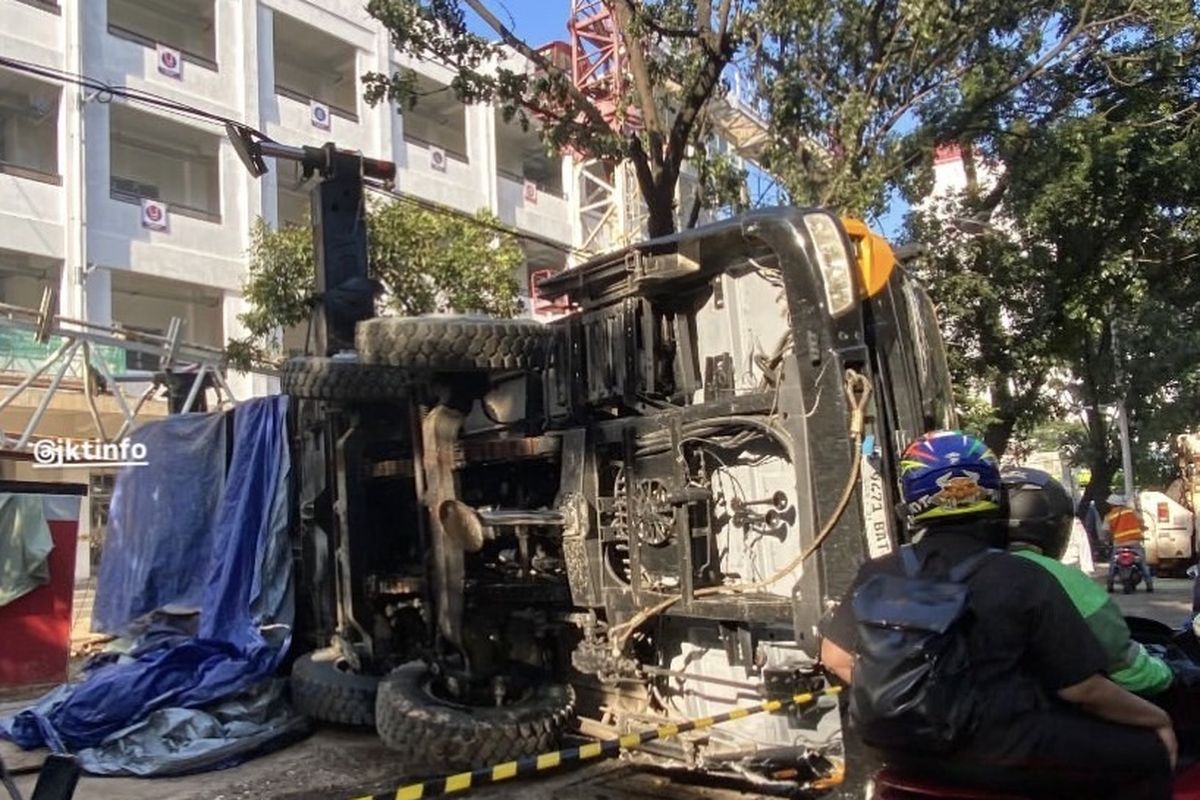Truk Proyek yang Terguling di Tebet Baru Bisa Dievakuasi Malam Ini