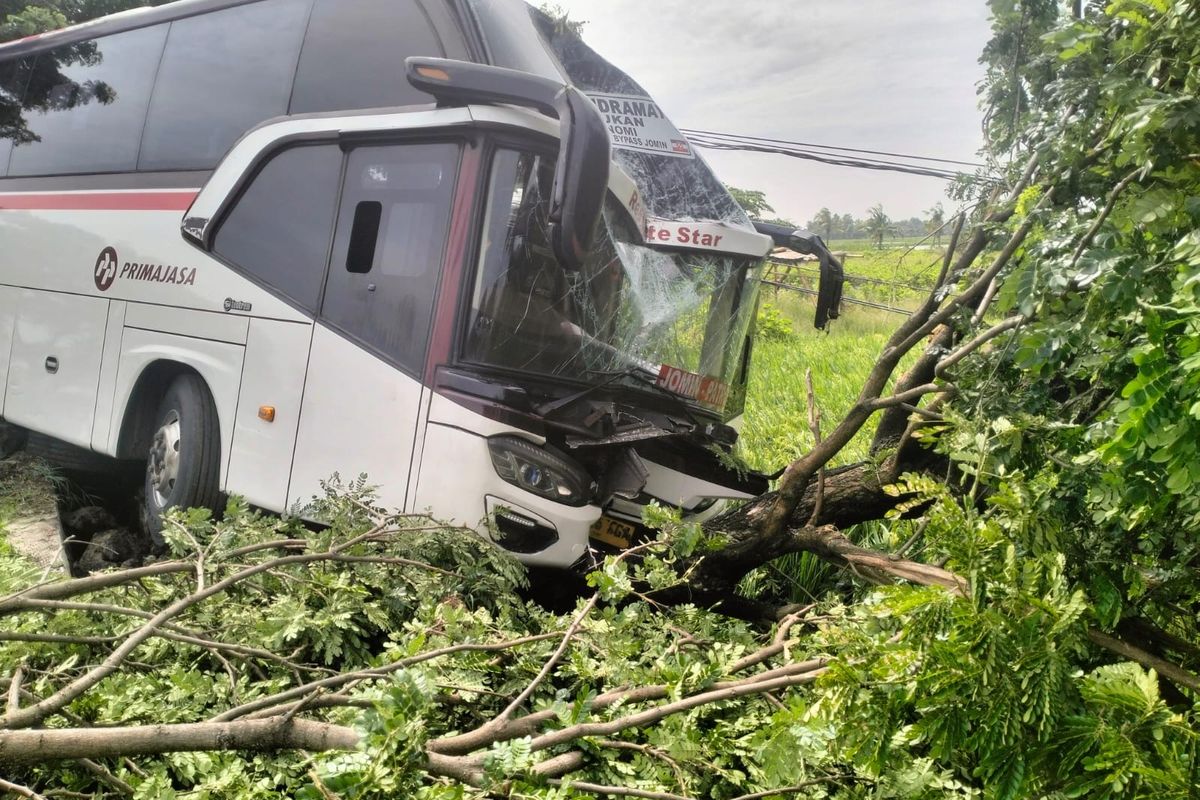 Sopir Pingsan, Bus Primajasa Nyelonong Tabrak Pohon di Jalur Pantura